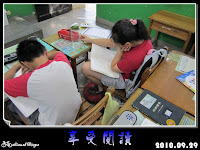 週三下午,原本該是孩子沒課回家的時間,可是這個學年度開始,因為台北縣強制實施了活化課程的關係,變成週三下午也得上課了,除了兩節英語社團課外,還有一節是所謂的精進閱讀。